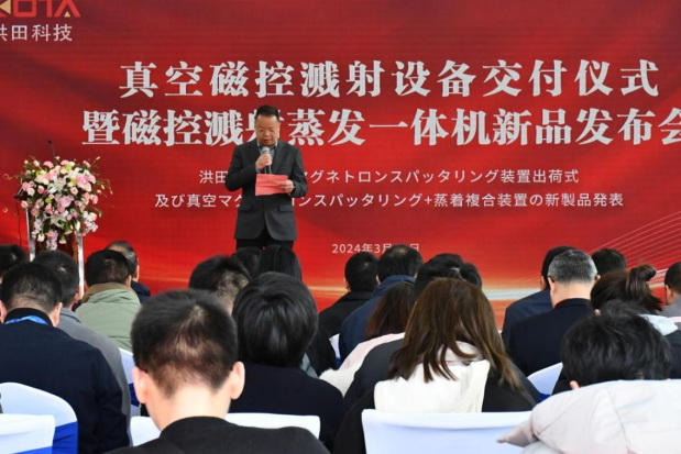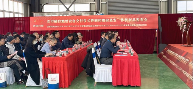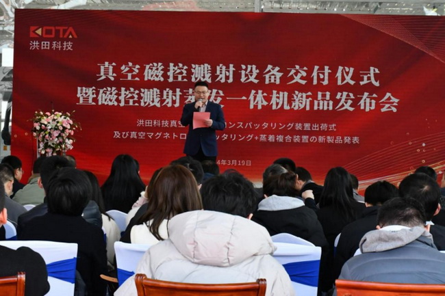 Toimitusseremonian jälkeen uuden tyhjiömagnetronisputteroivan haihdutuskoneen lanseeraus oli tapahtuman kohokohta. Kota -tekniikan johtaja Ben antoi kaikille yksityiskohtaisen tuotteen esittelyn. Tämä tyhjiömagnetronisputteroiva haihdutuspäällystyskone käyttää puhdasta magnetronisputterointitekniikkaa ja tyhjiöhaihdutuspäällystyskoneen päällystettä, joka voi samanaikaisesti täyttää kaksipuolisen rulla-roll-kuparin ja alumiinipinnoitteen vaatimukset. Verrattuna perinteiseen kaksivaiheiseen menetelmään, se parantaa satoa, tasaisuutta, automaatiotasoa ja laskeutumisen puhtautta. Tämän tuotteen lanseeraus merkitsee, että Kota Technologyn komposiitti kuparialumiinifoliovirran keräilijän valmistus on saavuttanut uuden tason.