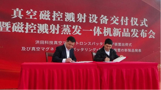 Tapahtumassa Kota Technology -yrityksen toimitusjohtaja Mitsuda Mitsuya ja Hanlin New Materialsin puheenjohtaja Wang Rongfu allekirjoittivat laitteen toimitusmääräyksen muodollisesti. 10 kuukauden huolellisen virheenkorjauksen jälkeen Kota-tekniikan tuottama "yksivaiheinen kuiva menetelmä" tyhjiömagnetronisputteroiva integroitu laite on saavuttanut ilahduttavat tulokset, saavuttaen teollisuuden tason monissa teknisissä parametreissa, ja ne ovat luoneet vankan perustan yrityksen myöhemmälle alustan laajennusasettelusta tyhjiömagnetronin sputter-laitteiden alalla.