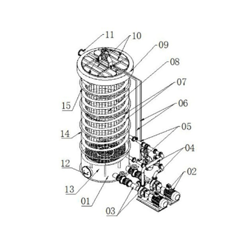 Korkean tehokkuuden kupari liuennut säiliö käsittää kuparin liukenevan säiliön rungon, jossa kuparin liukeneva säiliön runko käsittää säiliön yläosan, säiliön yläosassa sijaitsevan säiliöpeitteen ja nestemäisen jakelujärjestelmän, joka on kytketty kuparin liuentavan säiliön rungon ulkoiseen putkilinjaan; Nestemäisen jakelujärjestelmä käsittää happaresistentin kiertopumpun, nestemäisen sisääntulolinjan, nestemäisen poistoputken, nestemäisen happea-injektiosekoittimen ja ilman sisääntulon putkilinjan; Kupari liukeneva laite on järjestetty kuparin liuottavan säiliön rungon sisälle; Kupariliuukulaite käsittää monikerroksisen pyörrevirtauskanavan, ruudukkosylinterin, ilmanpakojen portin, kaivonreiän laitteen, pohjan nesteen purkausreiän, keskimmäisen nesteen poistoaukon ja ylemmän nesteen täydennysreiän. Happoresistentin kiertopumpun nesteen sisääntulo on kytketty kuparin liuenneen säiliön rungon alaosaan, ja happoresistentin kiertopumpun nestekulmainen poistoaukko on kytketty nestemäiseen happea-injektiosekoittimeen. Happirikas ilma ja kuparisulfaattikeskus sekoitetaan täysin nestemäisen happea-injektiosekoittimen läpi vaahtovirtauksen muodostamiseksi, ja sitten säiliön rungossa muodostuu pyörrevirtaus monikerroksisen pyörteen virtauskanavan läpi säiliön rungon sisäseinään, muodostaen valtavan kierroksen tankkirungon sisälle, joka parantaa kuparimateriaalia, joka parantaa suuresti kontaktialuetta ja aikataulua, kun taas kupari-sidoksissa ja aikataulussa on kupari-standardi. Tehokkuus.
